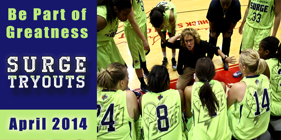 The St. Louis Surge Women’s Semi-Professional Basketball Team will be hosting a closed session tryout for the 2014 season Saturday, April 19, 2014, from 10:00 AM to 2:00 PM; location to be determined.